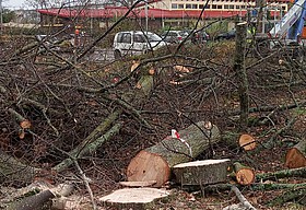 Im Zusammenhang mit dem Parkraumumbau begann heute die Firma Immo Herbst Garten- und Landschaftsbau GmbH, entsprechend der Baumfällgenehmigung, mit dem Fällen von 12 ausgewählten Bäumen. Insgesamt bleiben 14 Bäume im Bestand bestehen, fünf große Bäume und sieben kleine Bäume werden gefällt. Als Ersatz ist die Neupflanzung von acht Bäumen vorgesehen.