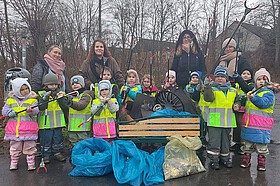 Insgesamt sind die Kinder gut mit dem Thema vertraut, denn in der Kita Birkenweg dreht sich einmal im Jahr eine Woche lang alles um die richtige Abfallentsorgung. Mehrfach im Jahr finden sich dann Freiwillige, die mit dem Bollerwagen losziehen und nicht nur um die Kita den Müll vom Boden aufsammeln. „Der Sinn unserer Aktion ist, die Kinder dafür zu sensibilisieren, keinen Abfall in die Landschaft zu werfen. Gleichzeitig sollen sie lernen, wie zuhause die fachgerechte Entsorgung des Hausmülls in die drei Tonnen funktioniert“, erklärt Schall.